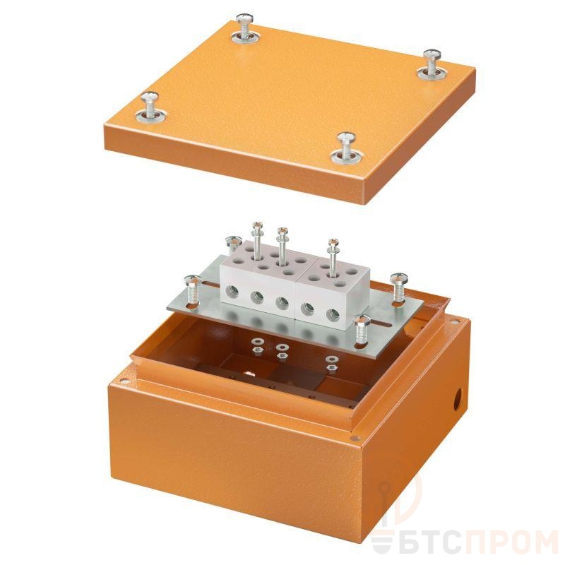 Предназначение огнестойких ответвительных коробок – соединение и ответвление проводов и кабелей с сохранением работоспособности при пожаре. Коробки применяются в составе огнестойких кабельных линий и прошли испытания в соответствии с ГОСТ Р 53316 с продукцией различных кабельных заводов. Материал – сталь, цвет – оранжевый, RAL2003. В комплект поставки коробок входят керамические клеммники, а также огнестойкие метизы (монтажная пластина, анкера, винты, шайбы, гайки).