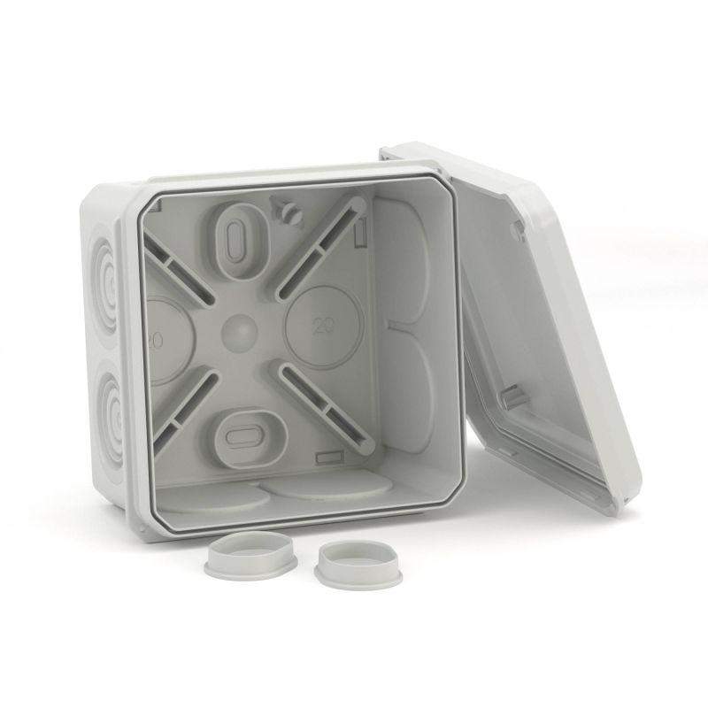 Применяется для защиты и эстетичного оформления мест соединения кабелей (информационных, осветительных, силовых). Коробка имеет 8 герметичных вводов по периметру для ввода жестких и гофрированных труб, а также кабелей с максимальным диаметром 20 мм, и 2 дополнительных ввода на торцевой части коробки для ввода жестких и гофрированных труб, а также кабелей диаметром 20 мм. Параметры 70x70х40 мм (внутренние размеры) и 79х79х48 мм (внешние размеры). Квадратная форма. Материал – пластик. Крышка - матовая, непрозрачная, закрывается защелкиванием. IP55 по ГОСТ 14254. Можно устанавливать как в помещении, так и на открытом воздухе (при условии защиты от воздействия прямых солнечных лучей и осадков). Цвет - серый. Температура эксплуатации от –25 до +60 °С. Halogen free.