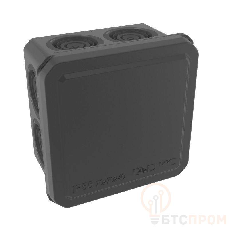 Применяется для защиты и эстетичного оформления мест соединения кабелей (информационных, осветительных, силовых). Коробка имеет 8 герметичных вводов по периметру для ввода жестких и гофрированных труб, а также кабелей с максимальным диаметром 20 мм, и 2 дополнительных ввода на торцевой части коробки для ввода жестких и гофрированных труб, а также кабелей диаметром 20 мм. Параметры 70x70х40 мм (внутренние размеры) и 79х79х48 мм (внешние размеры). Квадратная форма. Материал – пластик. Крышка - матовая, непрозрачная, закрывается защелкиванием. IP55 по ГОСТ 14254. Можно устанавливать как в помещении, так и на открытом воздухе (при условии защиты от воздействия прямых солнечных лучей и осадков). Цвет - черный. Температура эксплуатации от –25 до +60 °С. Halogen free.