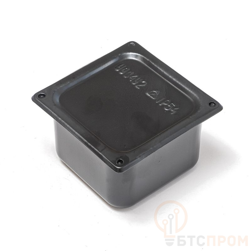 Конструкция коробки имеет размеры 110х110х80 мм и соответствует степени защиты IP54, что гарантирует эффективную защиту от пыли и брызг воды с любого направления. Наличие уплотнителя по периметру крышки обеспечивает герметичность соединения. Для удобства монтажа кабелей коробка оснащена стандартными металлическими промрукавами типа PR08.9805.