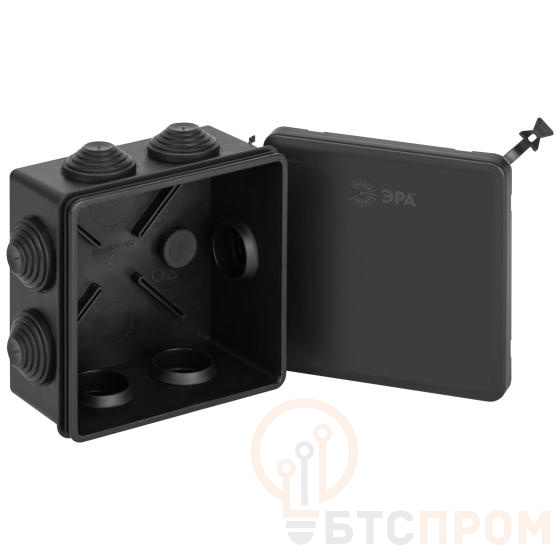 Коробка распаячная ОП 100х100х55мм IP55 с гермовводами 7 входов прямой монтаж черн. KOR-100-100-55-7gv-MP-B Эра Б0069880