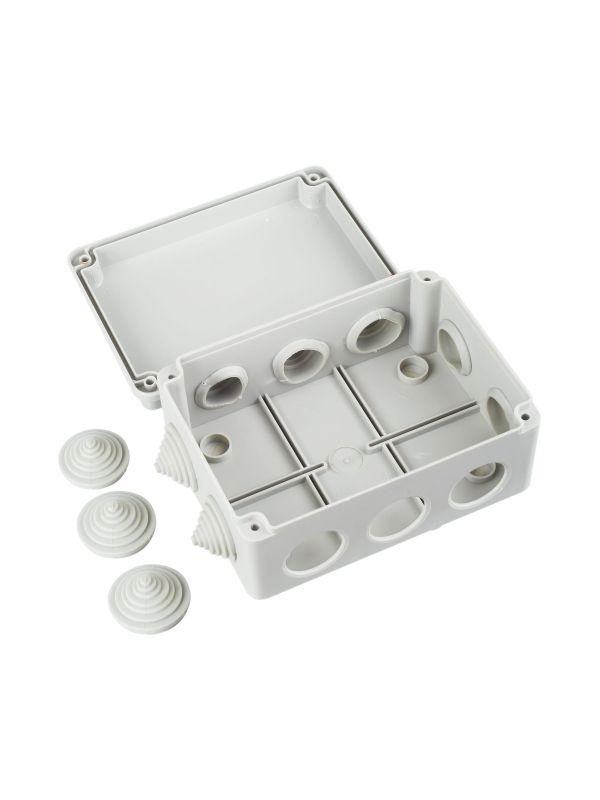 Монтажные коробки для открытого монтажа предназначены для разветвления проводов и кабелей, также для скрытия и дополнительной защиты мест коммутации. Используются как часть системы электрической канализации, состоящей из жестких и гофрированных труб. Коробки с повышенной степенью защиты могут быть использованы на открытом воздухе, а также во влажных и пыльных помещениях. Подходят для прямого монтажа. Материал изготовления: полистирол. Материал коробок является безгалогенным («HF» — halogen-free). Цвет: серый. Степень защиты: IP44. Температура эксплуатации: -25...+40. Количество вводов: 10 - D=25мм. Размер: 150х110х70мм.