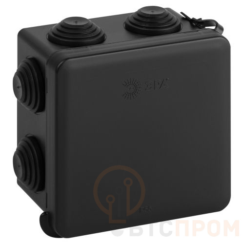 Коробка распаячная ОП 80х80х50мм IP55 с гермовводами 7 входов прямой монтаж черн. KOR-80-80-50-7gv-MP-B Эра Б0069878