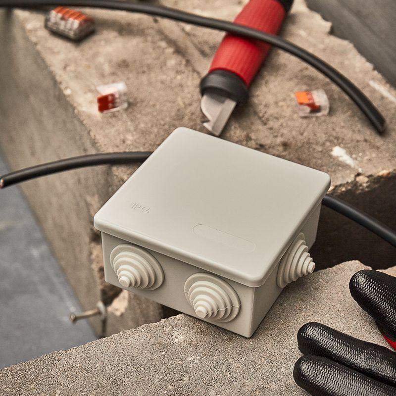 Распаячная коробка предназначена для защиты кабельных соединений от пыли, влаги и механических повреждений. Предназначена для крепления на стены, потолки, лотки. Укомплектована вводными сальниками. Характеристики: Размер: 85х85х40 мм Степень защиты: IP44 Цвет: серый Количество вводов: 6 (d 23мм) Материал: полистирол