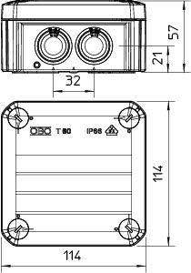 Коробка распределительная 114х114х57мм IP66 T60 7хM25 свет. сер. OBO 2007061