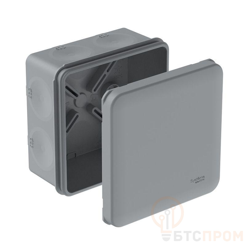 Коробка распределительная IP66. Внутренний размер - 85х85х42. Цвет - серый. Выполнена по технологии двухкомпонентного литья. Для ввода кабелей и труб имеет на каждой боковой стороне по 2 мембраны O25 мм (всего 8), которые надежно обхватывают кабель/трубу, плюс 2 ввода на дне коробки. Коробка предназначена для монтажа пристреливанием, например, при помощи газового пистолета. Крепежные отверстия имеют колодцы под ствол O11 мм. Огнестойкость-650°С. На дно наклеена этикетка для розничной продажи.