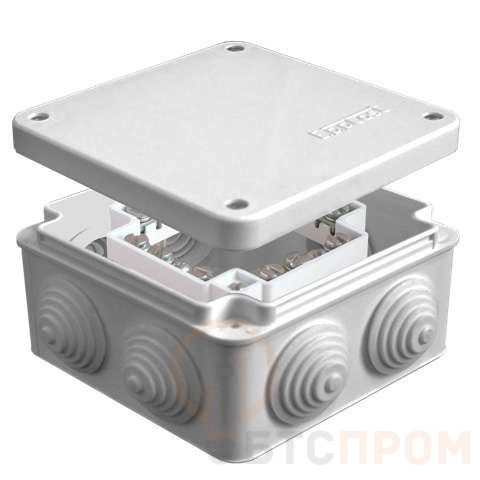 Коробка распределительная ОП 105х105х56мм IP54 с клемм. 7 выходов 4 гермоввода 16А 24 контакта крышка на винтах сер. Epplast 110058