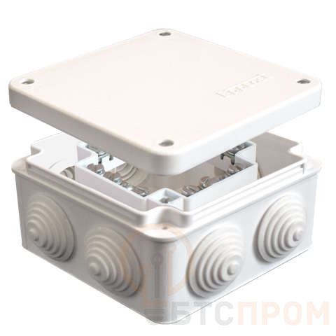 Коробка распределительная ОП 105х105х56мм IP54 с клемм. 7 выходов 4 гермоввода 16А 24 контакта. крышка на винтах бел. Epplast 110057