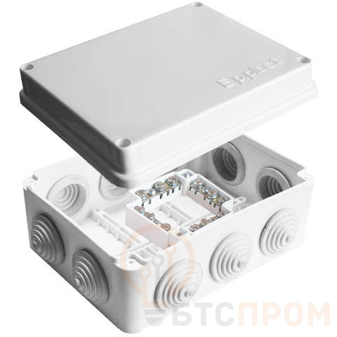 Коробка распределительная ОП 150х110х70мм IP54 с клемм. 10 выходов 10 гермовводов 16А 24 контакта крышка на винтах бел. Epplast 210317