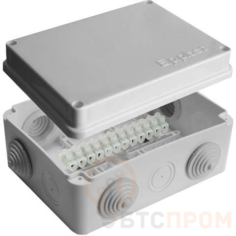 Коробка распределительная ОП 150х110х70мм IP54 с клемм. 10 выходов 6 гермовводов 10А 12 контактов крышка на винтах сер. Epplast 210304