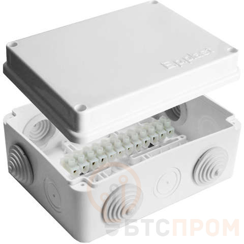 Коробка распределительная ОП 150х110х70мм IP54 с клемм. 10 выходов 6 гермовводов 10А 12 контактов крышка на винтах бел. Epplast 210303