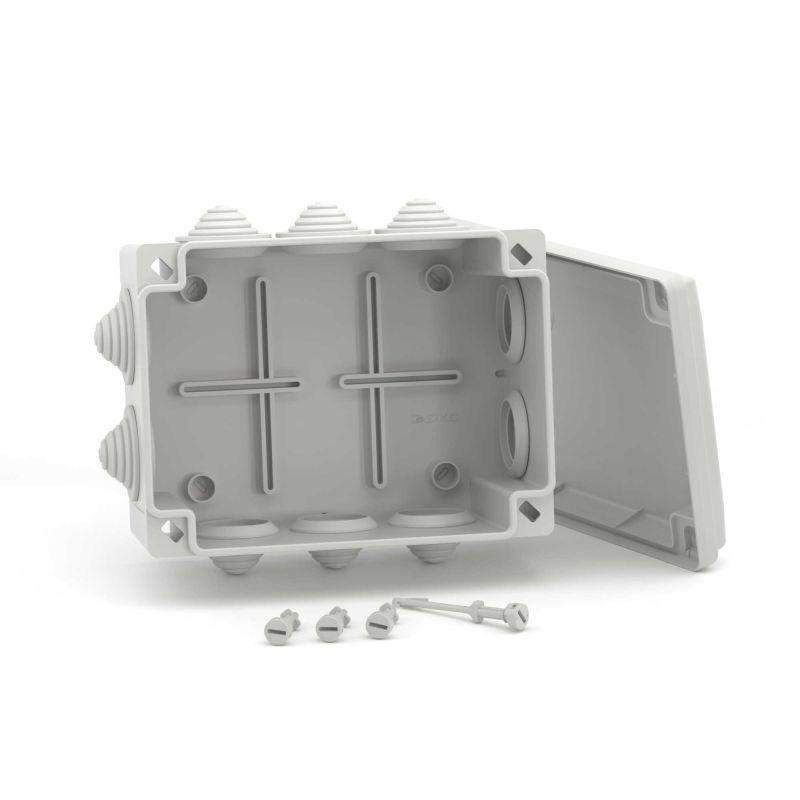 В состав системы "Express" входят жесткие и гибкие армированные трубы, аксессуары для их крепления и соединения, корпуса для накладного монтажа электроустановочных изделий ДКС серии "Viva". Жесткие гладкие трубы применяются для прокладки электрических, телефонных, телевизионных сетей, выполненных шнурами, кабелями, проводами. В серию входят ответвительные коробки для открытого настенного размещения. Они различаются по количеству и конструкции кабельных вводов. Ответвительные коробки серии "Express" обеспечивают быстрый монтаж и доступ к кабелю при необходимости. Коробка ответвительная с 10 кабельными вводами д. 32 мм. Размер коробки - 190х140х70 мм. Конструкция обеспечивает высокую степень герметизации - IP 55.