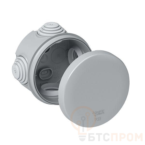 Распределительные коробки Systeme Electric (ранее Schneider Electric) используются для открытой установки. Имеют защёлкивающуюся крышку, колпачки, изолирующие крепёжные винты, и 4 ступенчатых сальника для ввода кабеля или гофротрубы. Сальники подходят для кабелей и труб диаметром 4…8, 8…12, 12…16 и 20 мм. Размеры: внутренние D65x40, внешние D84х48 мм. Степень защиты – IP55, огнестойкость – 750 °С. Материал: полипропилен. Цвет - серый. Имеют индивидуальную этикетку.