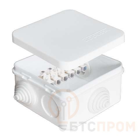 Коробка распределительная ОП 75х75х45мм IP54 10А 6 выходов 6 контактов 3 гермоввода клемм. крышка защелкивающаяся бел. Epplast 220323