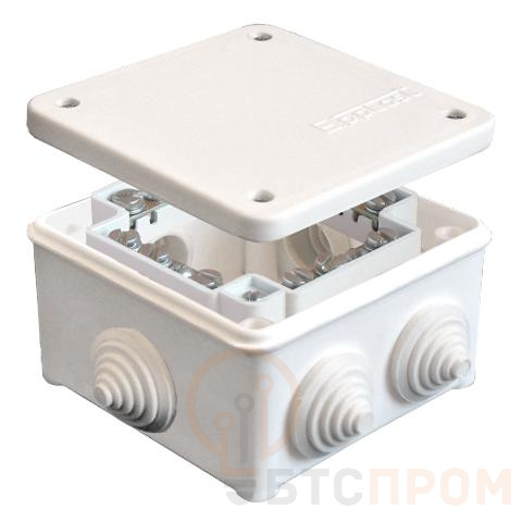 Коробка распределительная ОП 85х85х45мм IP54 с клемм. 7 выходов 3 гермоввода 16А 24 контакта крышка на винтах бел. Epplast 130123