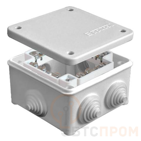 Коробка распределительная ОП 85х85х45мм IP54 с клемм. 7 выходов 3 гермоввода 16А 24 контакта крышка на винтах сер. Epplast 130124