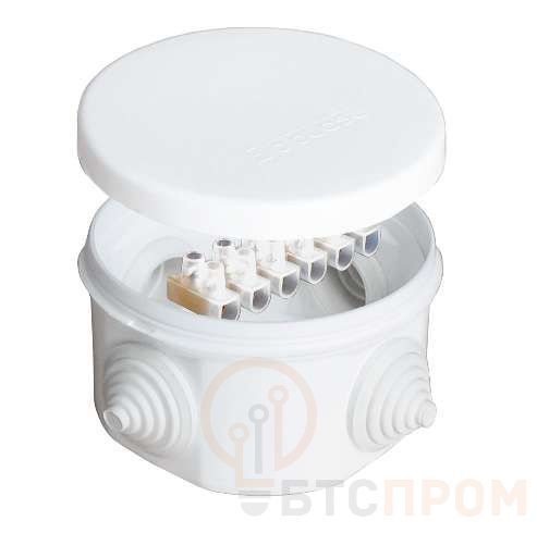Коробка распределительная ОП d75х45мм IP54 с клемм. 4 выхода 4 гермоввода 10А 6 контактов крышка защелкивающаяся бел. Epplast 240343
