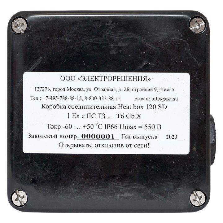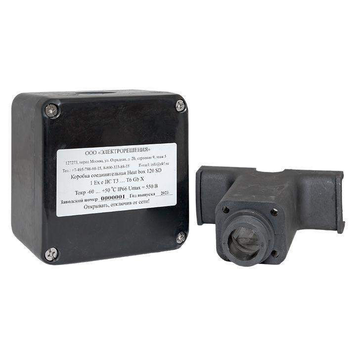 Коробка Heat box 120 SD предназначена для подвода питания к одному или двум саморегулирующимся нагревательным кабелям марок ESR, ESS и ESU. Коробка устанавливается непосредственно на трубопроводе и может применяться с тепловой изоляцией толщиной до 120 мм. Нагревательный кабель вводится под тепловую изоляцию без применения дополнительных устройств. Применяемые клеммные наборы позволяют выполнить подключение многожильных или одножильных кабелей сечением от 0,5 до 10 мм2.