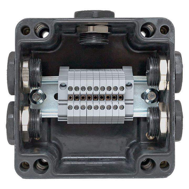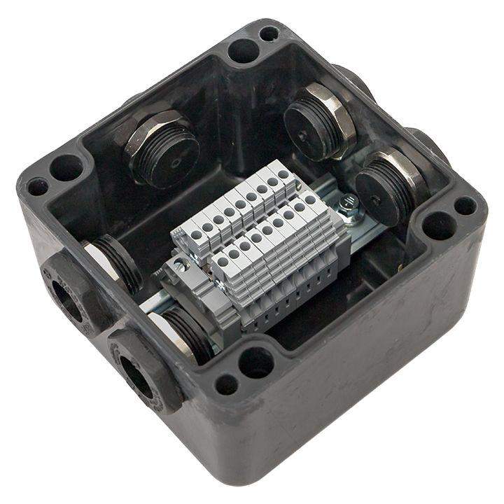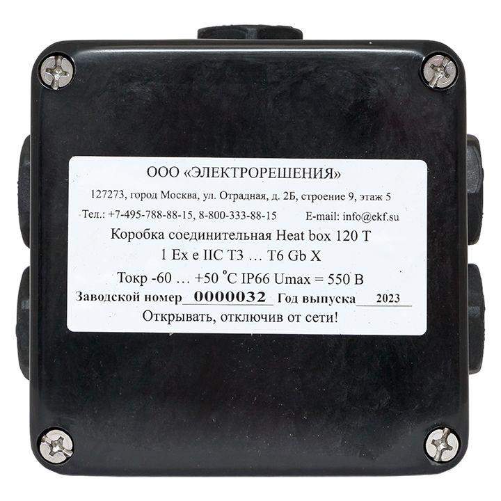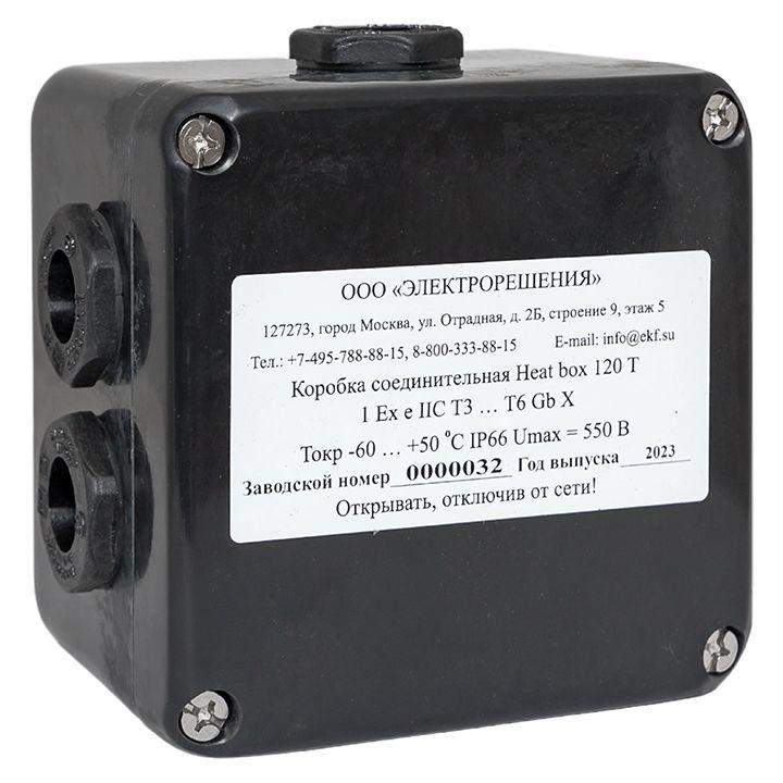 Коробка Heat box 120 T предназначена для подключения датчиков температуры и кабелей управления Коробка устанавливается на трубопровод при помощи кронштейна или на близлежащую металлоконструкцию. Датчики температуры вводятся под тепловую изоляцию без применения дополнительных устройств. Применяемые клеммные наборы позволяют выполнить подключение многожильных или одножильных кабелей сечением от 0,5 до 2,5 мм2.