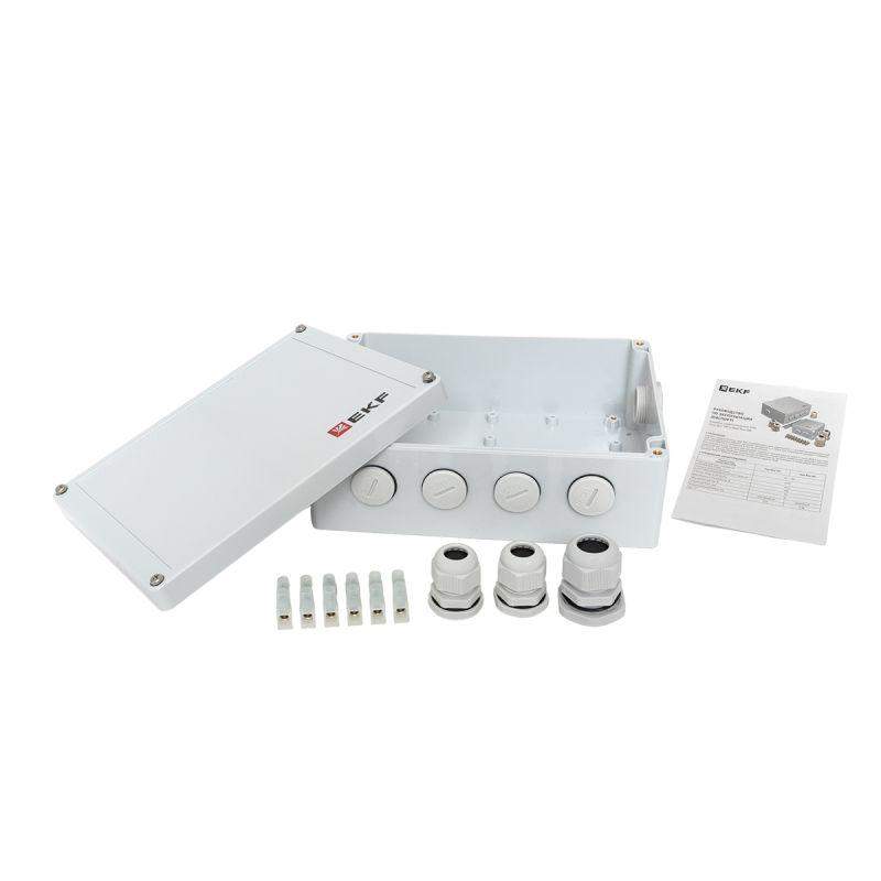 Коробка соединительная Heat Box 200 200 х 150 х 75 мм предназначены для подключения к силовой распределительной сети нагревательных кабелей, датчиков температуры, а также для коммутации силовых и информационных кабелей в нормальных зонах эксплуатации. Конструкция корпуса обеспечивает защиту от проникновения влаги и пыли IP65 и высокую коррозионную стойкость. Корпус и крышка выполнены из поликарбоната, фиксируются межу собой винтами из нержавеющей стали. Пыле- и влагозащиту обеспечивает уплотнитель, выполненный из неопрена. Соединительные коробки комплектуется двумя кабельными вводами М20 и одним М25 из полиамида, имеющими степень защиты IP68. Неиспользуемые отверстия закрываются заглушками соответствующего диаметра (входят в комплект). Материал изготовления заглушек – полиамид.