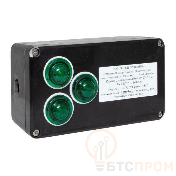 Коробка Heat box 220 SD-L3 предназначена для подключения и индикации напряжения на саморегулирующихся нагревательных кабелях марок ESR, ESS и ESU. Коробка устанавливается непосредственно на трубопроводе и может применяться с тепловой изоляцией толщиной до 120 мм. Нагревательный кабель выводится из под тепловой изоляции без применения дополнительных устройств.