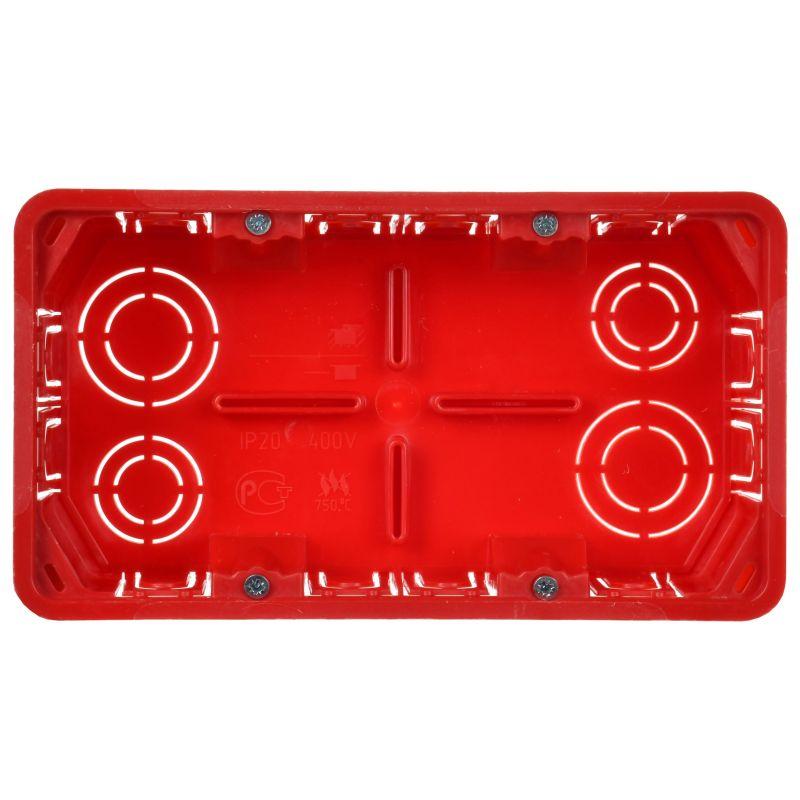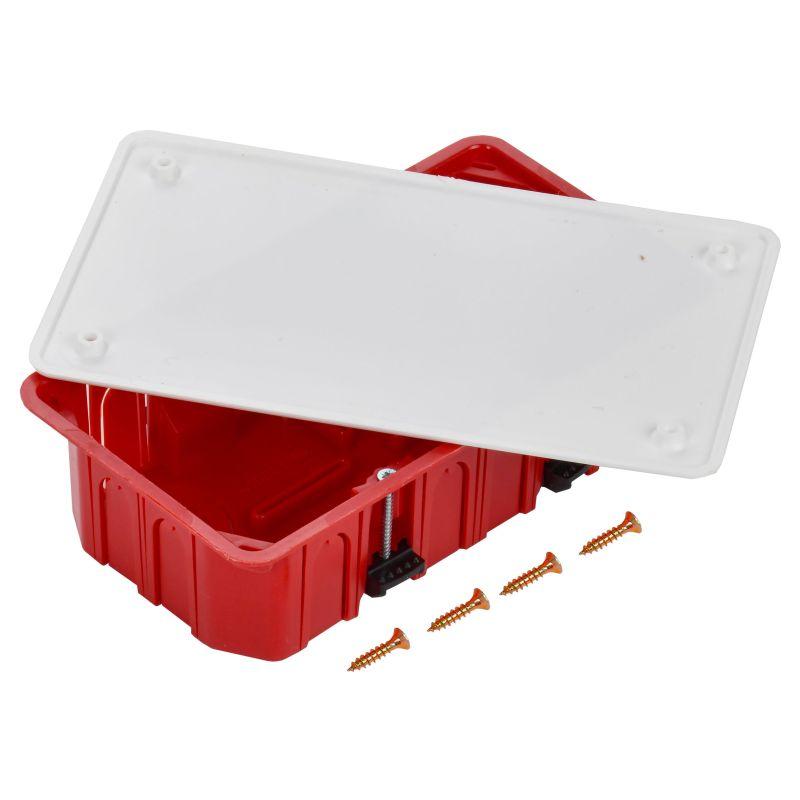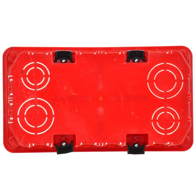 Установочные и распределительные коробки данной серии предназначены для монтажа в полые стены или перегородки, для установки различных электроустановочных изделий: розеток, выключателей, диммеров. Используя крышку, изделия можно применять в качестве распаячной (разветвительной) коробки для развода кабеля и проводов. Крепление в стене осуществляется при помощи зажимов. Материал изготовления: основание – полипропилен, крышка – полистирол. Материал коробок является безгалогенным («HF» — halogen-free). Цвет: основание - красный, крышка - белый. Степень защиты: IP20. Температура эксплуатации: -15...+60. Размер: 172х96х45мм.