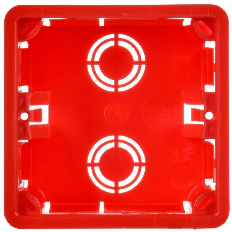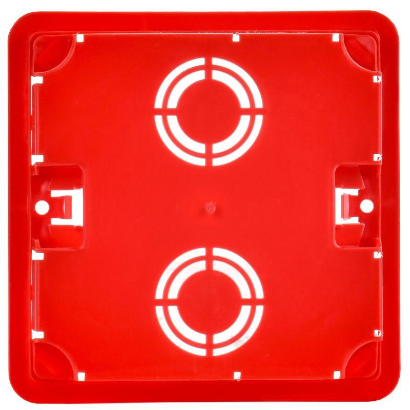 Установочные и распределительные коробки данной серии предназначены для монтажа в сплошные кирпичные или бетонные стены различных электроустановочных изделий: розеток, выключателей, диммеров. Используя крышку, изделия можно применять в качестве распаячной (разветвительной) коробки для развода кабеля и проводов. Крепление в стене осуществляется при помощи гипсовой или цементной шпатлевки. Материал: основание – полипропилен, крышка – полистирол. Материал коробок является безгалогенным («HF» — halogen-free). Цвет: основание - красный, крышка - белый. Степень защиты: IP20. Температура эксплуатации: -15...+60. Размер: 92х92х45мм.