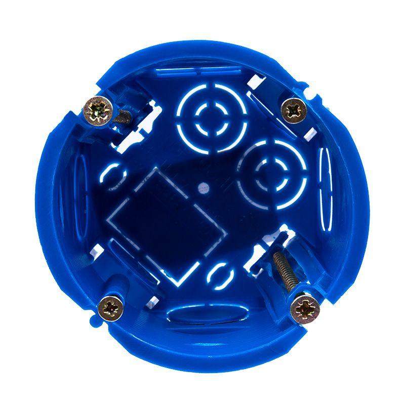 Коробка установочная (подрозетник) используется для монтажа электроустановочных изделий в полые стены. Характеристики: Степень защиты: IP30 Назначение: монтаж электроустановочных изделий в полые стены Саморезы: есть Межосевое расстояние: 71 мм Материал изделия: полипропилен Размеры: O 68 мм, h 45 мм Цвет: синий