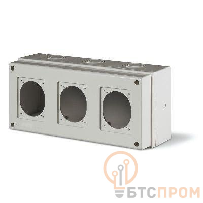Корпуса "Домино" без отсека модульного оборудования предназначены для построения розеточных постов с возможностью монтажа на стену, раму или тумбу. Число розеток - 3. Номинал розеток - 16 А, 32 А.