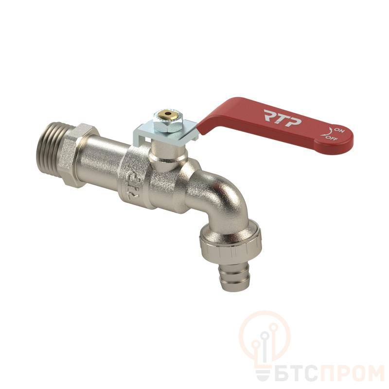 Кран шаровой водоразборный ручка рычаг латунь наружн./наружн. резьба 1/2х3/4дюйм-16 никель RTP 34662
