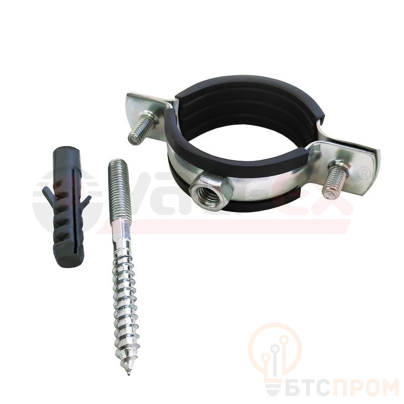 Хомут РМ d107-115мм 4дюйм с резиновым уплотнением (в компл. шпилька М8х80 и дюбель) оцинк. (36) VALFEX 45WR-115-М