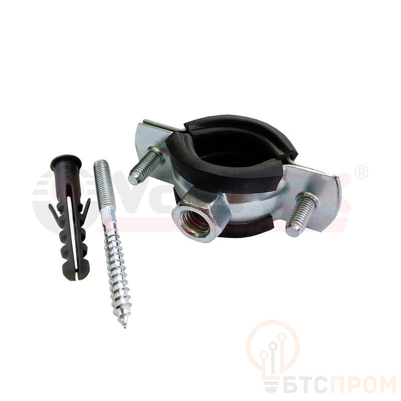 Хомут с резиновым уплотнением 1 1/2дюйм (в компл. шпилька М8х80 и дюбель) (150) оцинк. VALFEX 45WR-48