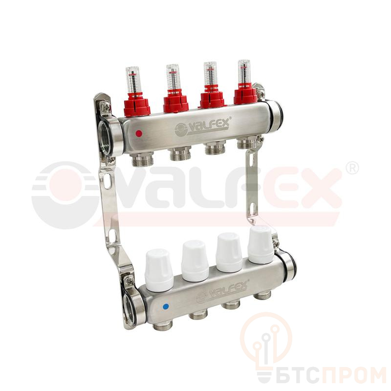 Блок коллекторов 1дюйм х 7 вых. евроконус 3/4дюйм с расходомером нерж. сталь (2) К VALFEX VF.584.0607