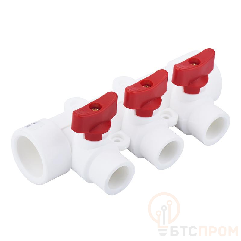 Коллектор PPR 32х20/3 с красн. шаровым краном бел. RTP 28205 фото в каталоге от BTSprom.by