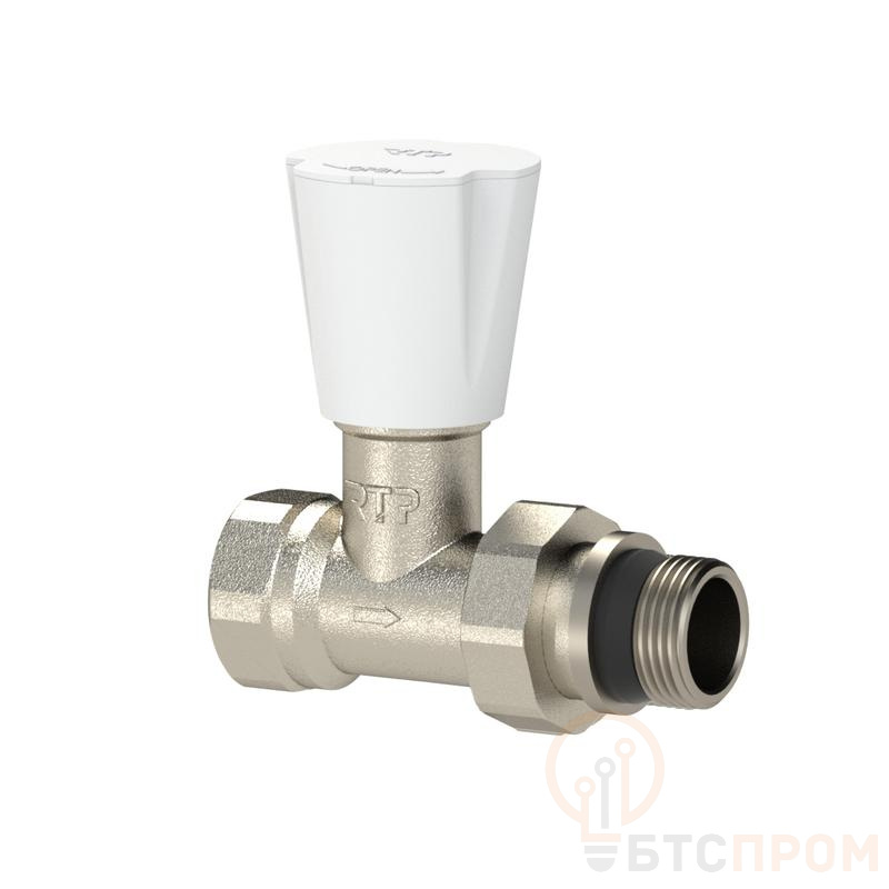 Вентиль для радиатора прямой с прокладкой латунь 1/2дюйм еврослот никель RTP 41410 фото в каталоге от BTSprom.by