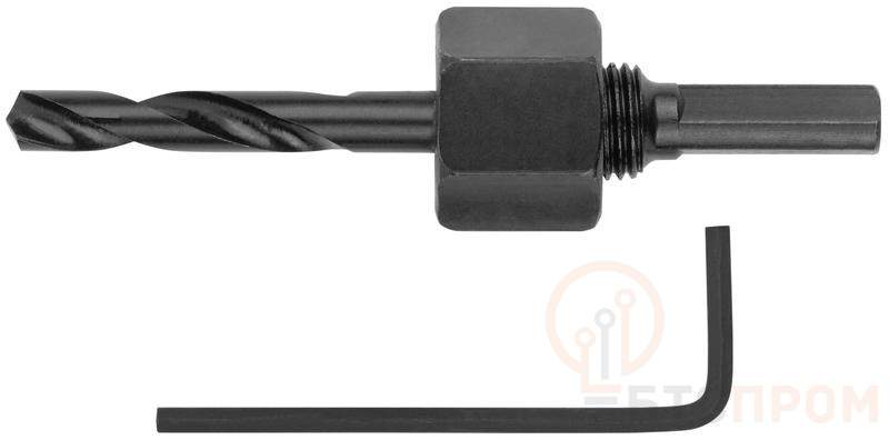 Адаптер для круговых пил FIT IT с шестигранным хвостовиком. Обеспечивает быструю и надежную фиксацию круговых пил FIT IT арт. 36771–36774 в инструменте. Используется совместно с центрирующим сверлом, которая поставляется в комплекте. Адаптер изготовлен из качественной инструментальной стали, что обеспечивает его долговечность и надежность в использовании.