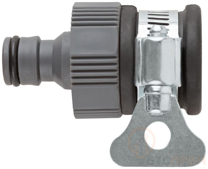 Адаптер внешний КУРС с хомутом предназначен для соединения поливочных шлангов разных диаметров с водонапорными трубами (в том числе безрезьбовыми) диаметром 3/4" (~17-20 мм) через универсальное быстросъемное соединение. Адаптер изготовлен из качественных материалов, что обеспечивает его прочность и долговечность.