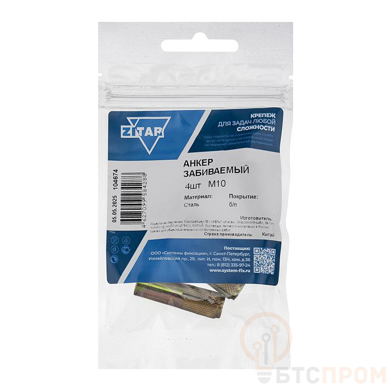 Анкер забивной М10 оцинкованный от бренда Tech-Krep/Zitar — это надежный и долговечный крепежный элемент для создания прочных соединений с бетонными, кирпичными и каменными основаниями. Изделие изготовлено из высококачественной стали с цинковым покрытием, что обеспечивает превосходную защиту от коррозии и позволяет использовать его в условиях повышенной влажности как внутри помещений, так и снаружи.