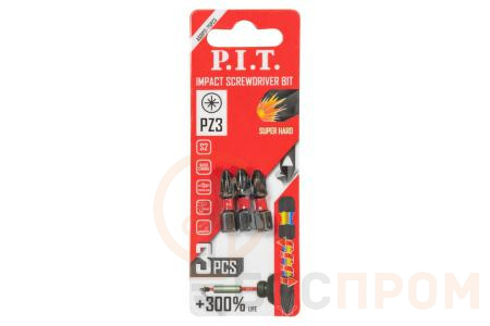 Бита ударная магнитная PZ3x25 мм IMPACT с торсионной зоной ASDR01-25PZ3 от P.I.T. — профессиональный расходный материал для интенсивной работы с шурупами. Изготовлена из высоколегированной стали S2, закалена и имеет антикоррозионное покрытие. Магнитный держатель надежно фиксирует крепеж, а торсионная зона (зона кручения) гасит пиковые нагрузки, защищая инструмент и запястье оператора от отдачи.