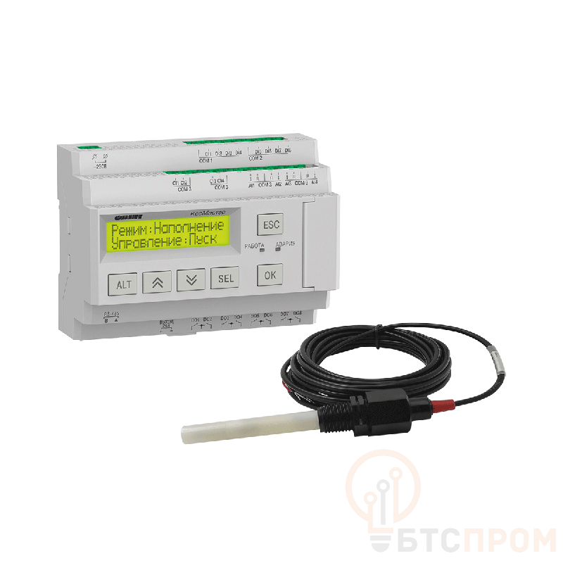 Блок управления КосМастер-230.00 ОВЕН (арт. 140371) предназначен для автоматического контроля и управления установками обратного осмоса. Устройство обеспечивает защиту мембраны, управляя работой насоса высокого давления и соленоидных клапанов. Ключевые характеристики: питание 230 В, 50 Гц, степень защиты IP20, наличие релейных выходов для подключения исполнительных механизмов, а также функция контроля давления и сброса в дренаж.