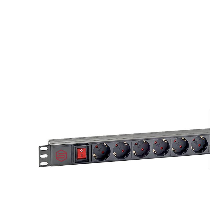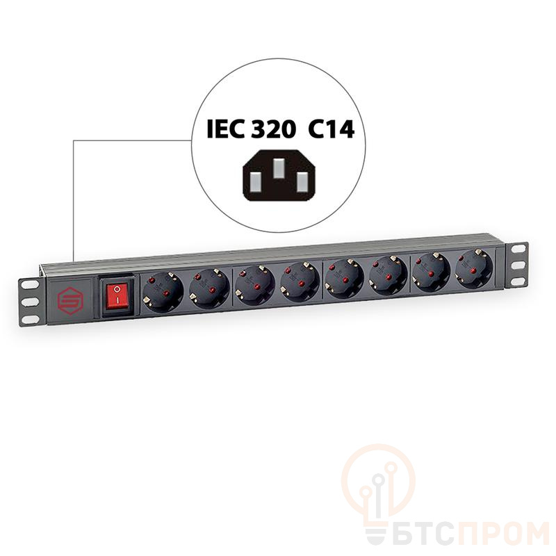 Блок розеток 8-м 16А горизонт. евростандарт для 19дюйм шкафов выключатель гнездо под шнур корпус ABS SYSMATRIX PD 0802.000