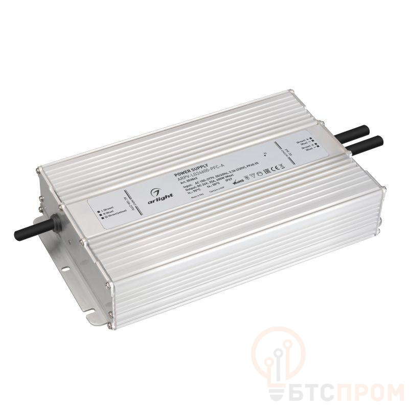 Блок питания ARPV-LG24600-PFC-A от Arlight — это надежный источник постоянного тока 24 В с мощностью 600 Вт и силой тока 25А, предназначенный для работы в сложных условиях. Корпус из прочного металла с высокой степенью защиты IP67 обеспечивает полную защиту от пыли и влаги, а также от кратковременного погружения в воду, что делает устройство всепогодным.