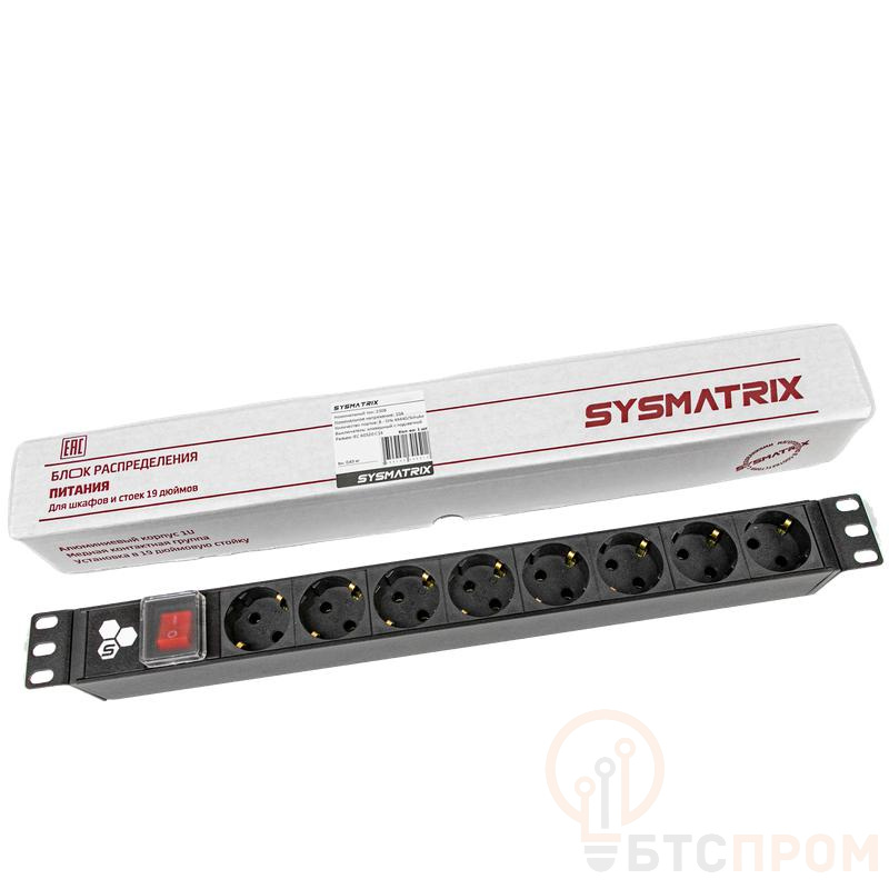 Блок розеток 8-м 10А 19 PDU гнездо под шнур SYSMATRIX PD 19.08SCH-IS-1.10 фото в каталоге от BTSprom.by