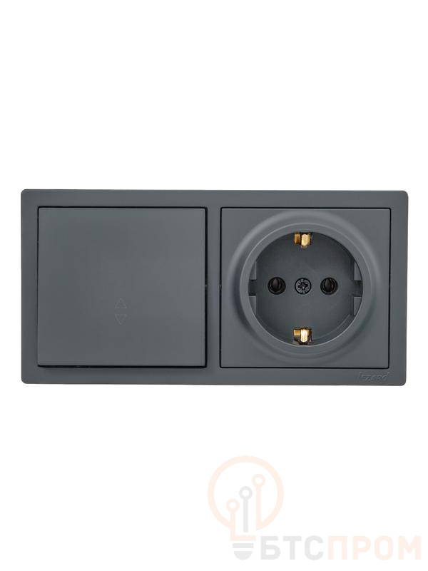 Блок ОП LETO (1-кл. выключатель проходной + 1-м розетка с заземл.) горизонт. графит LEZARD 752-3400-170BVP