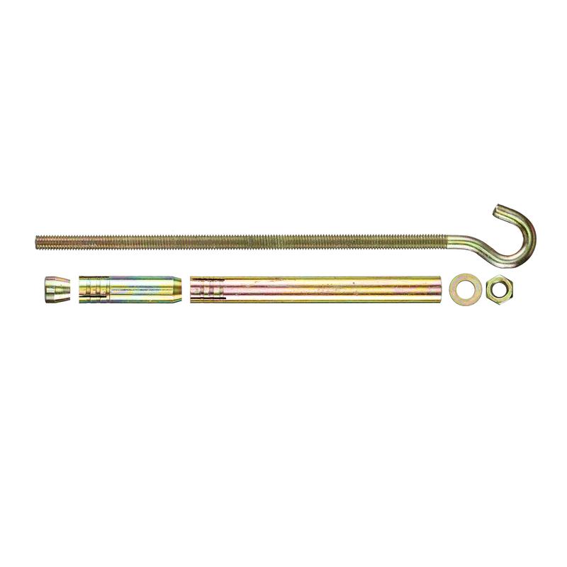 Область применения: крепление элементов стальных конструкций, нагруженных статическими силами: балюстрад, лестниц, рам. Материал применения: полнотелый бетон, природный строительный камень, полнотелый кирпич. Категорически запрещается осуществлять монтаж в пенобетоне, известняке, гипсолите и других хрупких материалах. Способ установки: предварительный и сквозной монтаж. Материал: углеродистая сталь с желтым цинковым покрытием. Особенности: способен выдерживать средние нагрузки. Повышенная прочность крепления достигается за счет двойного распора, двух зон расклинивания. Устанавливается в предварительно просверленное отверстие.