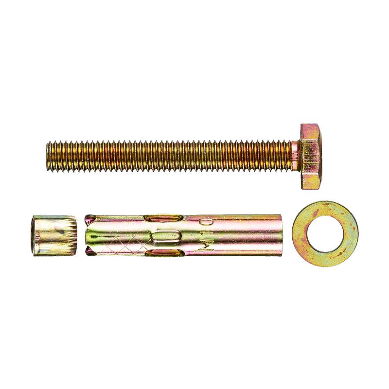 Область применения: монтаж консолей, кронштейнов, подвесных конструкций, кабельных лотков, осветительных систем, систем водоснабжения и канализации, различных ограждений. Материал применения: полнотелый кирпич, бетон, природный камень. Способ установки: предварительный и сквозной монтаж. Материал: углеродистая сталь с антикоррозионным цинковым покрытием. Особенности: устанавливается в предварительно просверленное отверстие.