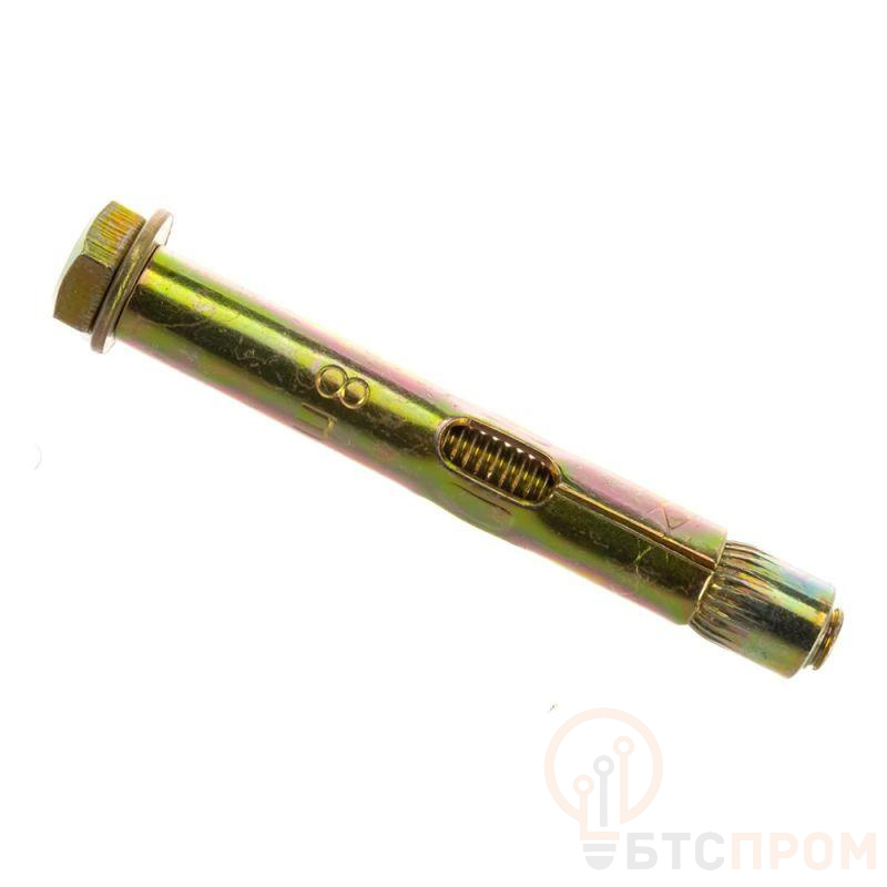 Характеристики: Резьба болта — М8, общая длина изделия — 100 мм, диаметр распорной гильзы — 10 мм. Оцинкованное покрытие обеспечивает высокую коррозионную стойкость, что позволяет использовать болт в условиях повышенной влажности как внутри помещений, так и на улице.