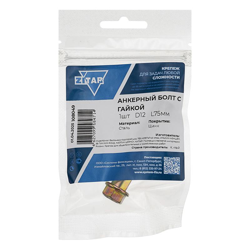 Болт анкерный с гайкой 12х75 Tech-Krep/Zitar 108049 фото в каталоге от BTSprom.by