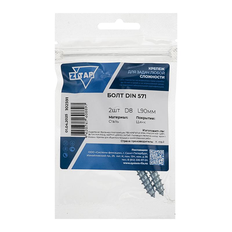 Болт сантехнический 8х90 DIN 571 оцинк. (уп.2шт) Tech-Krep/Zitar 102591 фото в каталоге от BTSprom.by