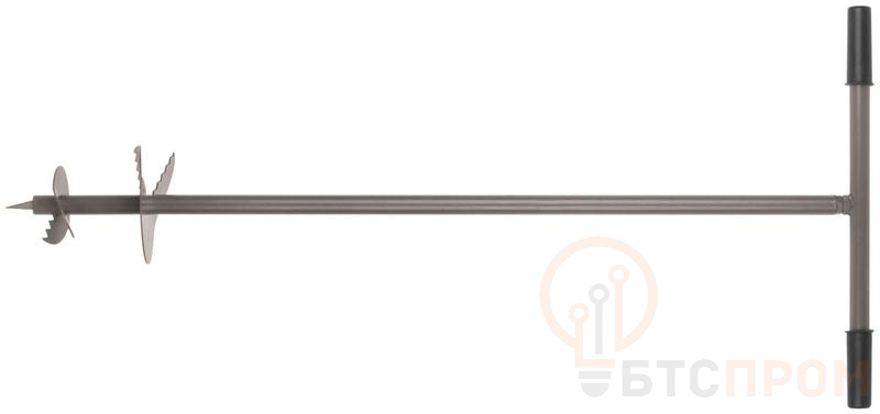 Бур садовый шнековый. Разборный, с возможностью увеличения длины за счет использования удлинителя 77248. Для ручного формирования скважин в грунте, предназначенных для установки различных опор, столбов, заливки свайных фундаментов и т.д. Материал: инструментальная сталь.